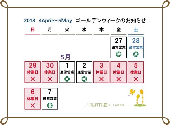 タートル新発田店の年末年始休業日についてお知らせ致します。